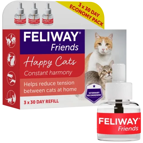 Feliway Friends helps your cats to get along better at home. When used continuously it maintains harmony between them.