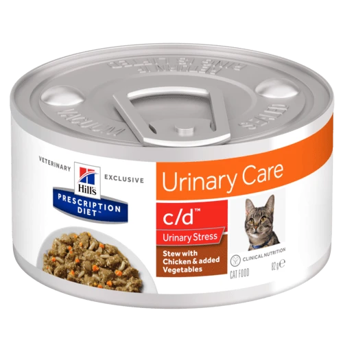 Hills c/d Multicare Urinary Stress Stew Wet Cat Food is specially formulated to support your cat’s urinary health while also managing stress. With chicken and added vegetables.