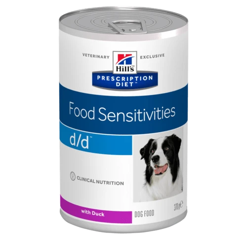Hills Canine d/d Duck & Rice Wet Food is formulated to help manage adverse food reactions and to support skin function in cases of dermatosis and excessive loss of hair.