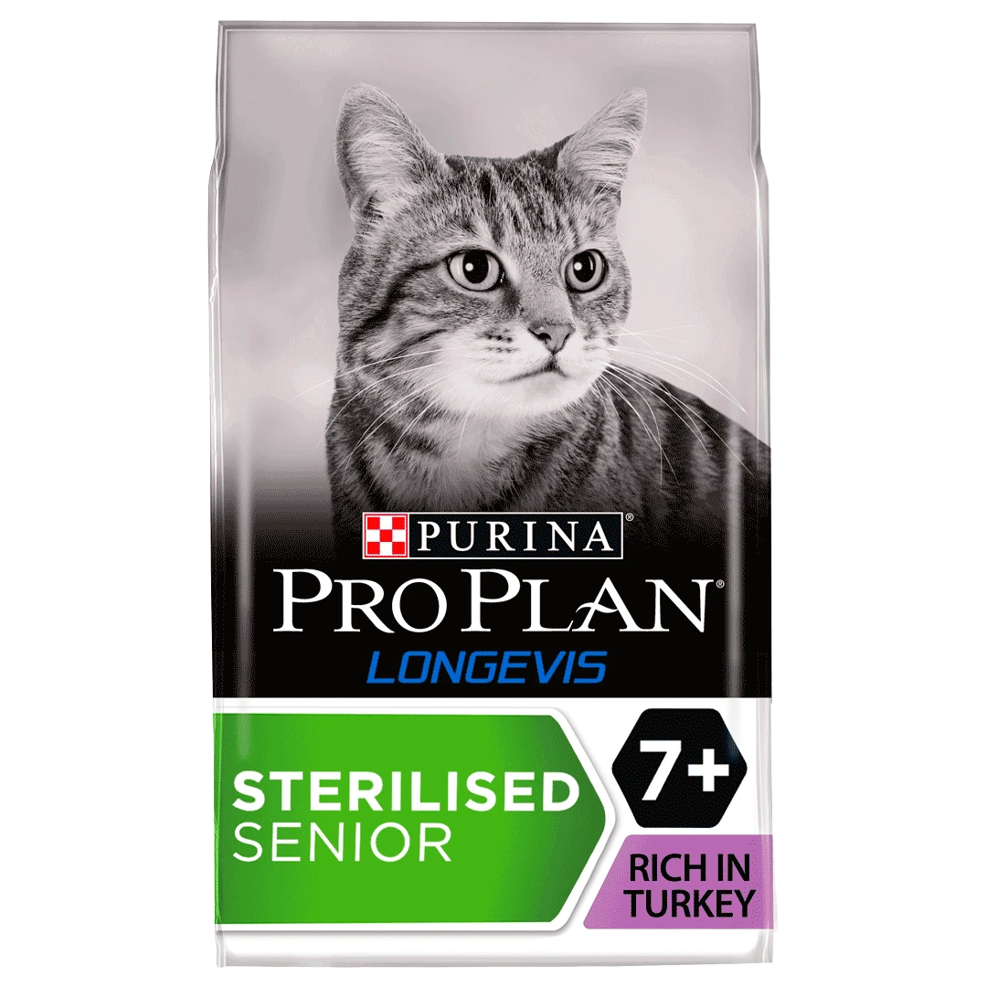 Purina Pro Plan Cat Longevis Senior 7+ Sterilised Dry Cat Food with Turkey is a complete and balanced dry cat food scientifically formulated to support healthy ageing in sterilised cats over 7 years old.