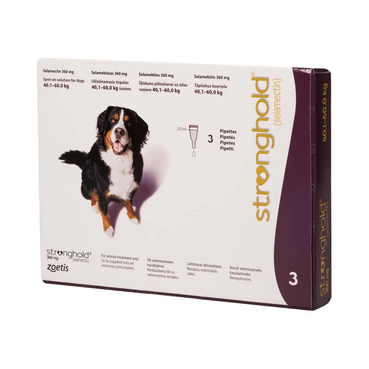 - the treatment and prevention of flea infestations caused by Ctenocephalides spp. for one month following a single administration. This is as a result of the adulticidal, larvicidal and ovicidal properties. Stronghold is also ovicidal for 3 weeks after administration. Through a reduction in the flea population, monthly treatment of pregnant and lactating animals will also aid in the prevention of flea infestations in the litter for up to seven weeks of age.